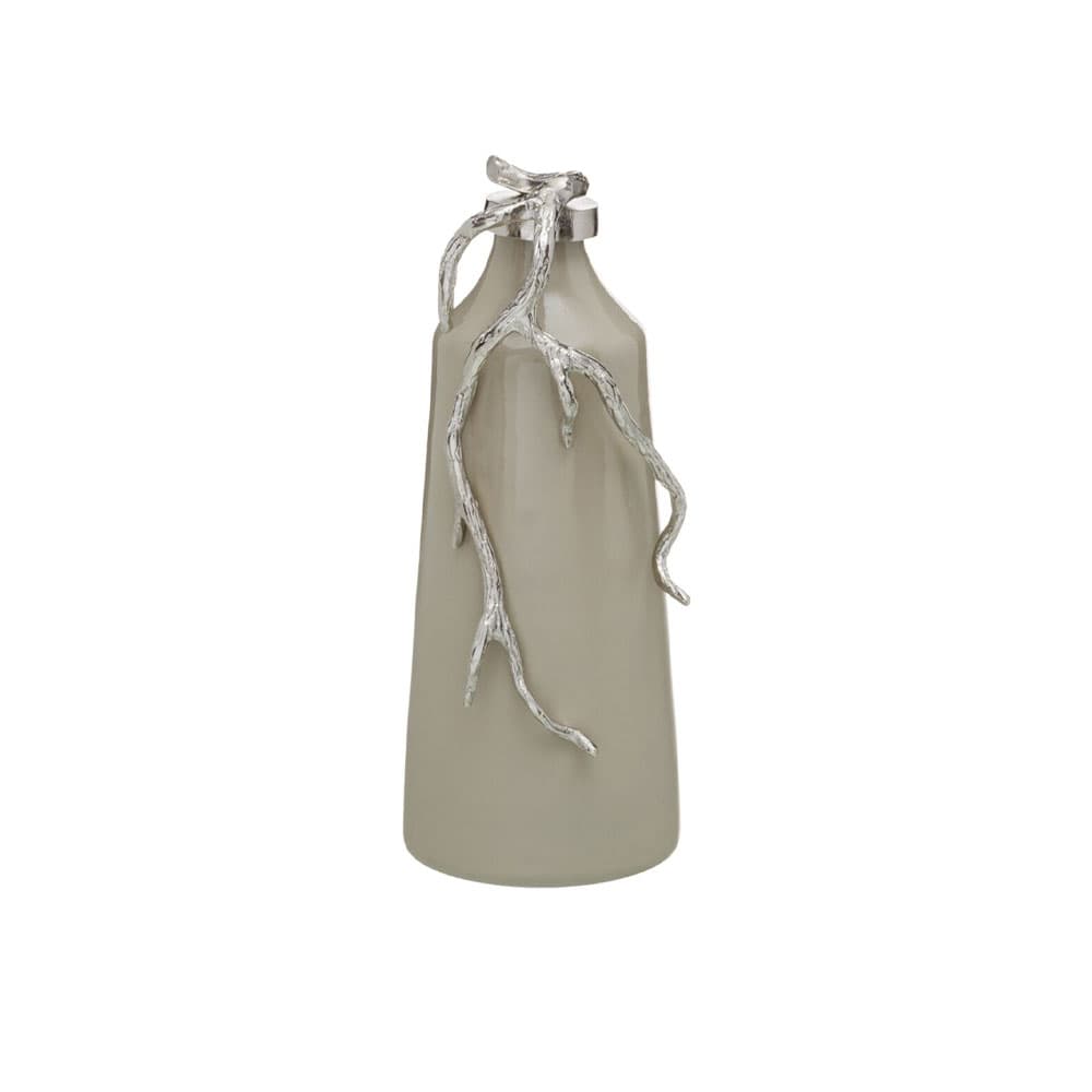 دکوری کوزه شیشه ای+درب طرح شاخه فلزی کوچک کرم