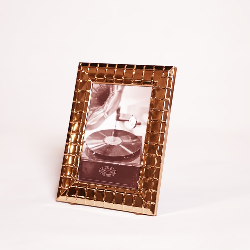 قاب عکس رومیزی فلزی مشبک طلایی